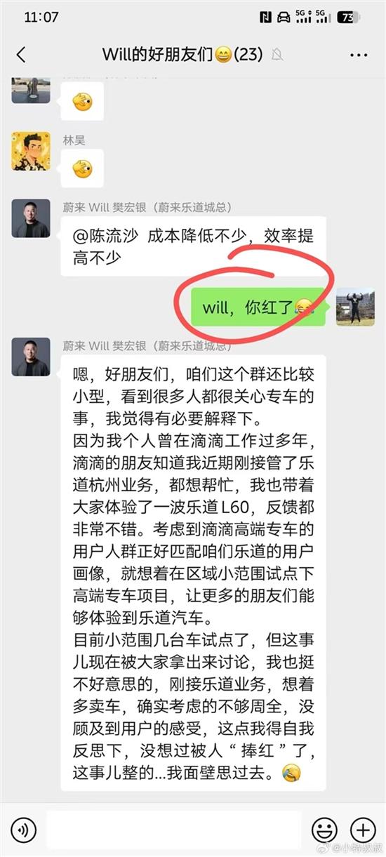 “目前小范围几台车试点了,但这事儿现在被大家拿出来讨论,我也挺不好意思的,刚接乐道业务,想着多卖车,确实考虑的不够周全,没顾及到用户的感受,这点我得自我反思下。”