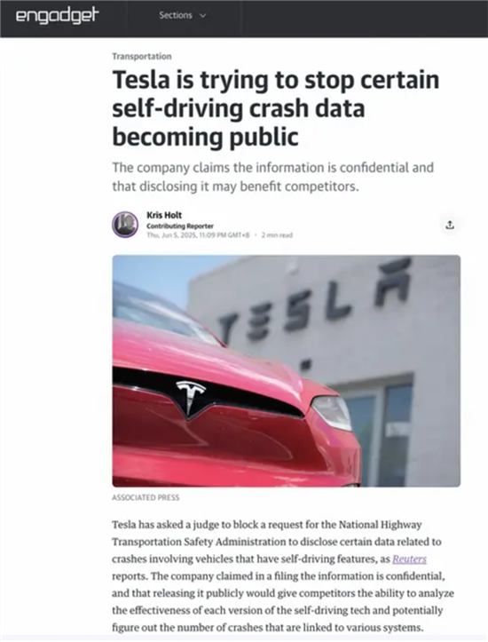 特斯拉认为,公开发布这些信息可能会使竞争对手能够分析特斯拉各个版本的“自动驾驶”技术的有效性。