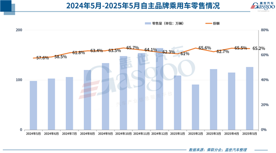 从累计数据来看,1-5月自主品牌零售市场份额为64%,较去年同期亦提升了7.9个百分点,展现出持续而强劲的发展势头。