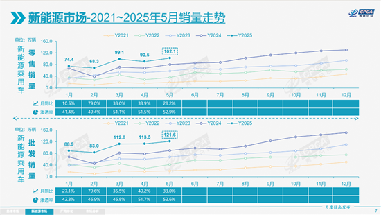据其分析,尽管今年5月仅有19个工作日,较去年同期减少2天,且月末端午假期也对产销节奏形成一定干扰,但得益于外部贸易环境改善、“两新”政策持续发力以及地方促消费政策的配套落实,叠加车展等线下活动的全面启动,车市仍保持良好走势。