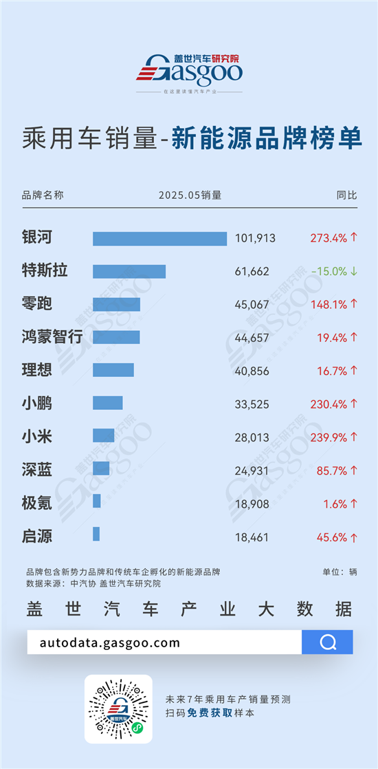 2025年5月乘用车销量-新能源品牌榜单