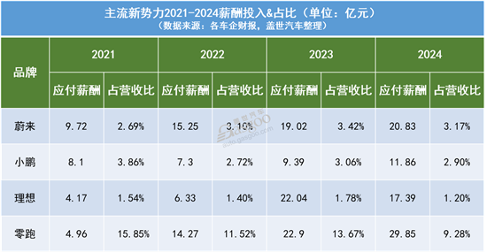近几年,关于新势力裁员、组织架构调整的消息虽不少,但各家员工薪酬状况仍相对较为稳定,占总营收比重保持在一定范围内浮动。也存在部分企业因为良好运营实现营收大幅度增长,从而导致员工薪酬占总营收比重小幅度下降的情况。
