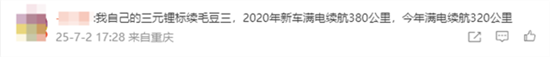 但也有人称自己的车衰减严重,19年提的新车,早两年前衰减就达到了18%,如今开了才9万公里,而且几乎不使用超充,也很少完全充满。