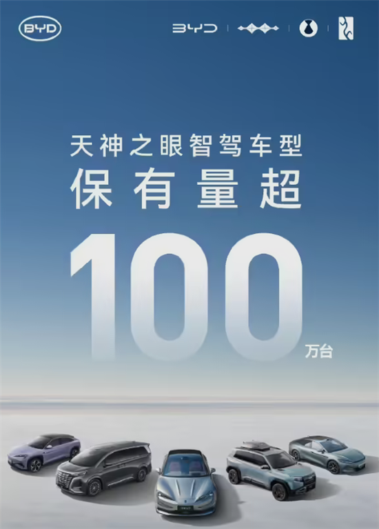 比亚迪官方宣布,天神之眼智驾车型保有量已超100万台。