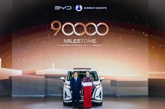 此次交付的第9万辆新能源汽车是腾势D9,现场交付给了泰国足协主席暖潘·兰萨姆女士。