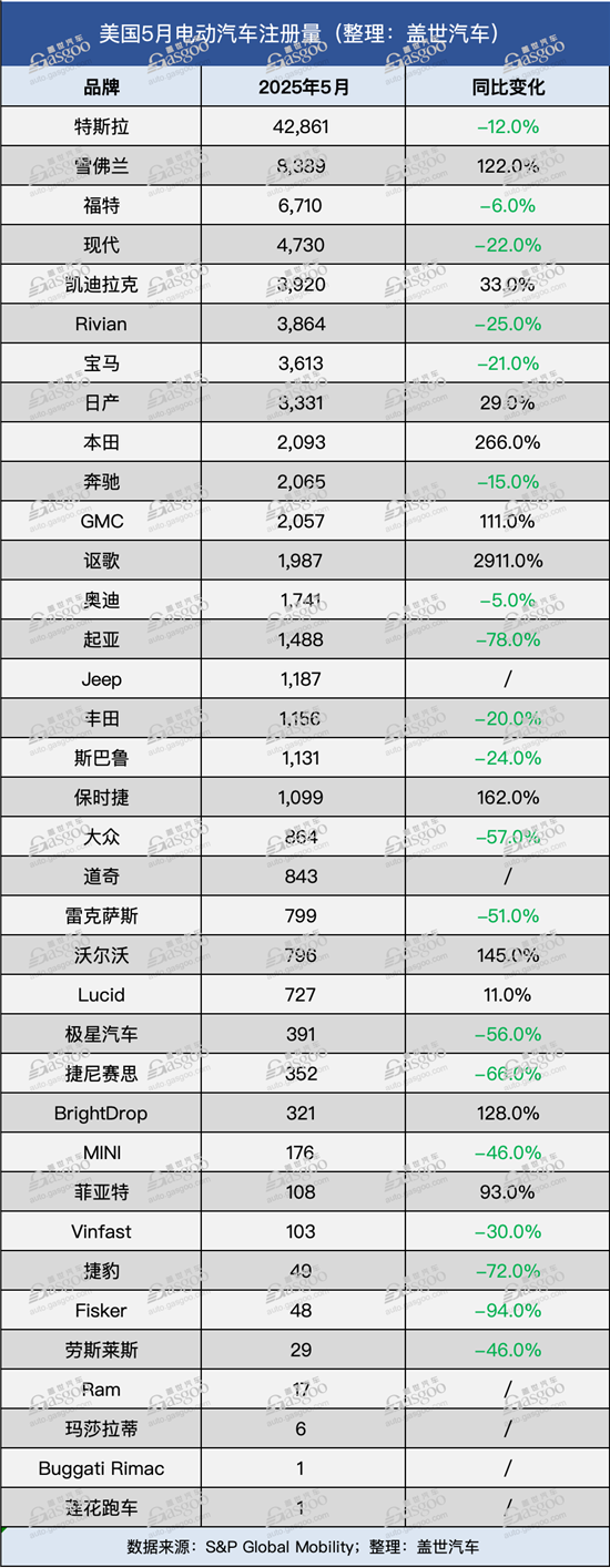 不过,今年1月至5月期间,美国电动汽车的注册量仍高于去年同期,同比增长7.4%,达到506,807辆,市场份额相对稳定,为7.3%。