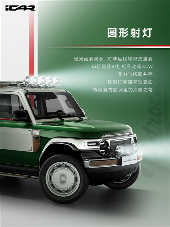 同时官方宣布,复古版套件还可以单独销售:射灯包699元,车顶平台包6099元,轮毂包3999元,PET改色版1890元。