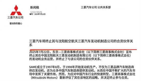 近日,三菱汽车宣布正式终止与沈阳航空航天三菱汽车发动机制造公司的合资伙伴关系,这代表着三菱所有业务彻底退出中国市场。