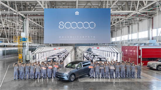 蔚来公司第80万台量产车在蔚来先进制造合肥一工厂正式下线,第80万台下线的量产车型为蔚来乐道L90。