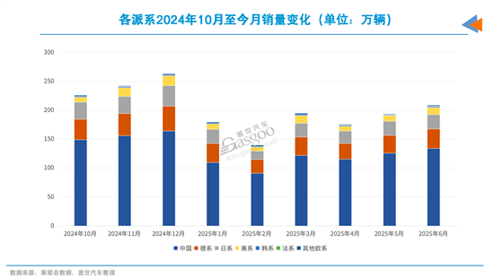 德系品牌在各派系中展现出较强的市场稳定性。数据显示,2025年上半年德系品牌销量达180.7万辆,占合资阵营比重为46%。德系目前市场份额虽然已降至16.6%,但仍稳居合资阵营首位。