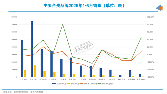 通过对销量数据分析可以发现,合资阵营近期的销量回稳是由少数几家头部企业贡献的。