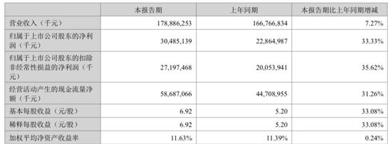财报显示,上半年宁德时代实现营收1788.86亿元,同比增长7.27%;归属于上市公司股东净利润304.85亿元,同比增长33.33%。综合毛利率则为25.0%,同比增长1.8个百分点;经营性现金流达587亿元;现金储备充裕,期末货币资金超过3500亿元。