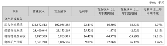 财报显示,上半年,宁德时代动力电池系统实现营收1315.73亿元,同比增长16.80%,毛利率为22.41%;储能电池系统实现营收284亿元,同比下降1.47%,毛利率为25.52%。
