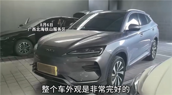 事后据了解,这辆车是比亚迪宋PLUS EV,该车主在车内毫发无伤,将继续广西的旅游行程,车辆则已送往4S店检修。