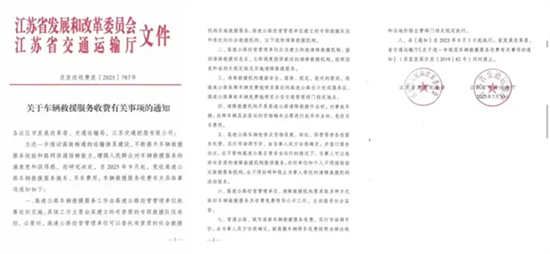 自2025年9月1日起,凡在江苏省内高速公路上发生故障或事故的车辆,救援所需的拖车和吊车服务,将一律免收费用。