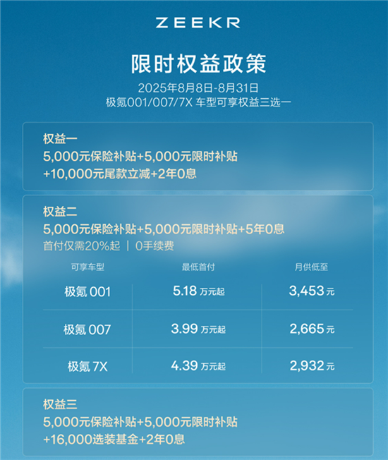 与此同时,在产品切换期间,针对极氪X、007、001、7X的现款在售车型,极氪还提供包括5年0息金融政策在内的多项限时权益。