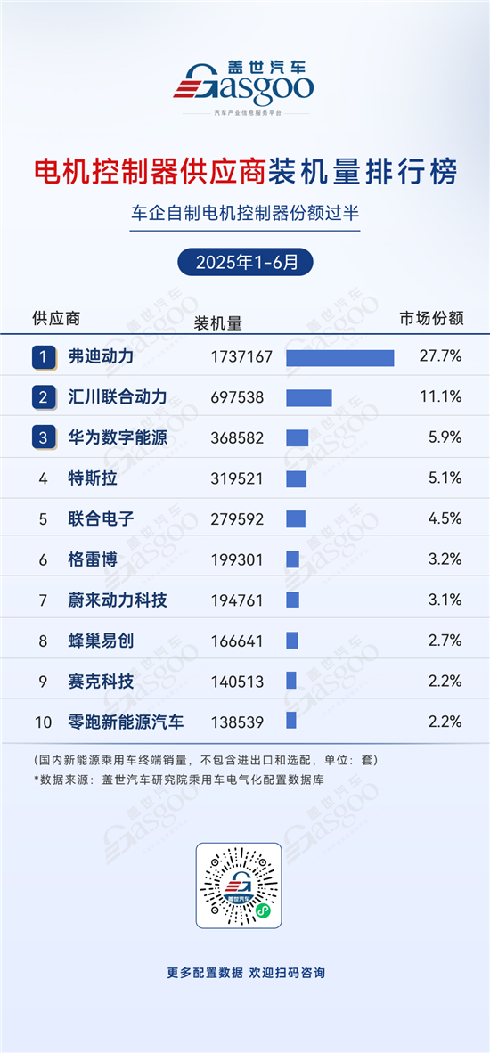 电机控制器供应商装机量排行榜