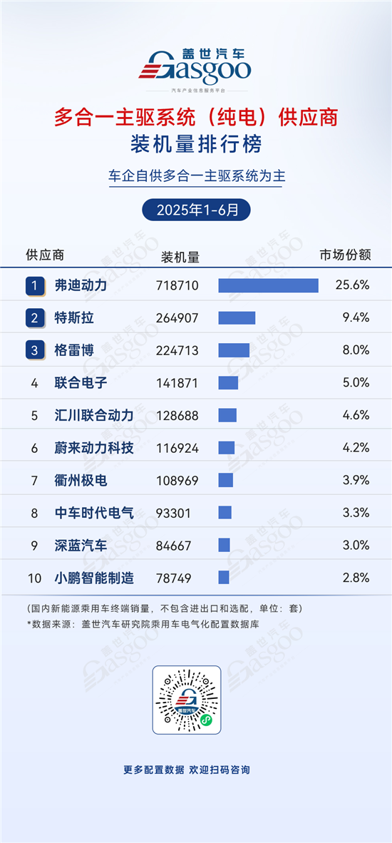 弗迪动力,2025年上半年装机量718,710套,市场份额25.6%。