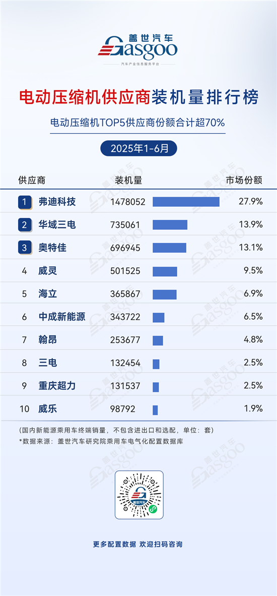 电动压缩机供应商装机量排行榜