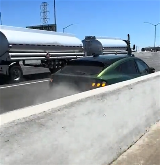 过路司机拍摄的视频显示,这辆绿色的福特野马Mach-E电动车疑似方向盘锁死,且无法刹车、转向,车辆与路边的护栏摩擦,也无法令车辆停下,依旧在高速前进。