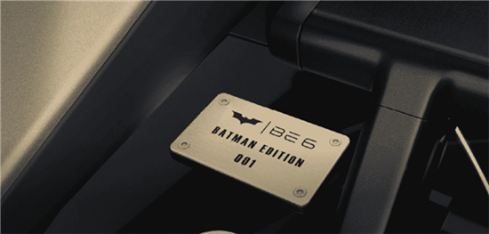内饰采用黑色绒面和皮革座椅配以金色细节,同样充满蝙蝠侠风格,比如蝙蝠剪影点缀座椅、内饰标签、门带、仪表板和数字驾驶舱的欢迎画面,中控台装有“拉丝炼金金蝙蝠侠版”编号铭牌。