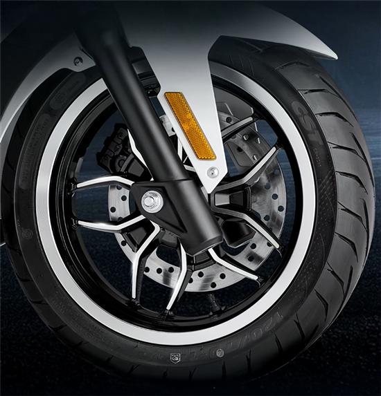 整车采用具有强烈运动风格的龙骨式车架结构,车身线条流畅,并能呈现出一定的运动姿态,两个版本只是在手把、轮毂、进气格栅以及脚踏区域有一些个性区别。
