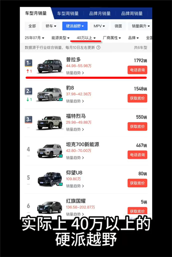 一汽丰田汽车销售有限公司企划部部长赵东发视频回应普拉多销量惨不忍睹。他表示,实际上,40万以上的硬派越野普拉多是销售冠军。