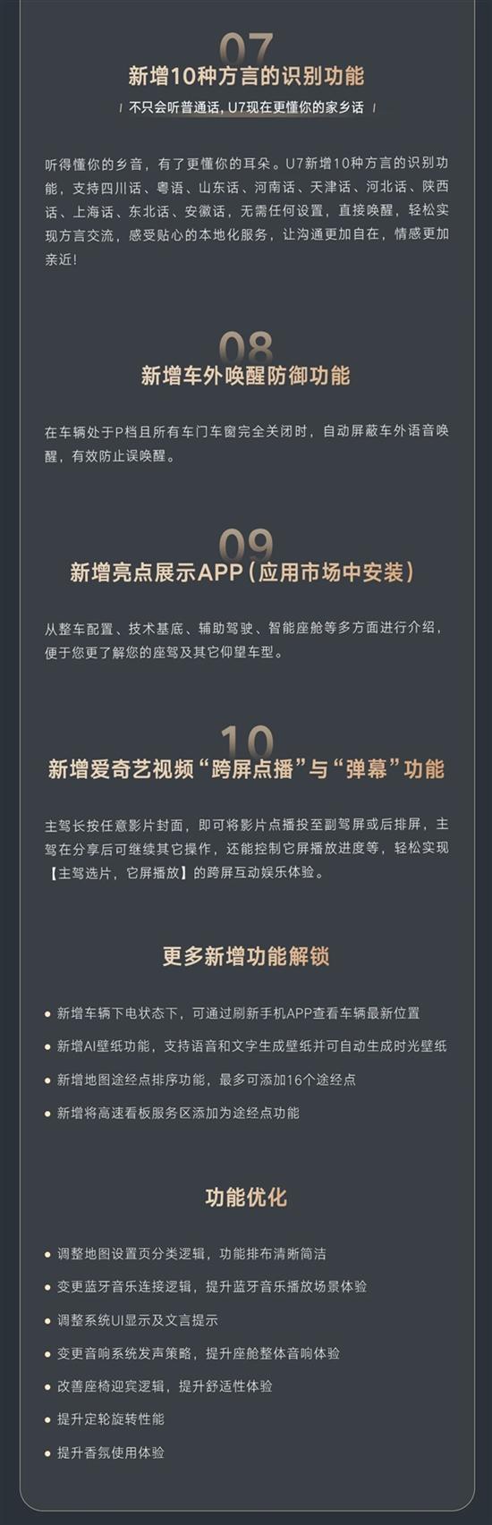 近日,仰望U7推送OTA V1.2.0版本升级,带来14项新增功能与7项优化功能。