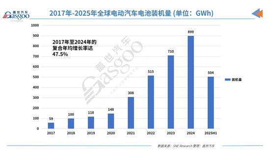 2017年至2024年,全球电动汽车电池装机量的复合年均增长率(CAGR)达47.5%,这凸显出全球电动汽车市场的持续增长态势。进入2025年,这一趋势仍在继续。