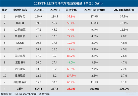 H1全球电动汽车电池装机量:宁德时代市场份额逼近40%,国轩高科位次后移