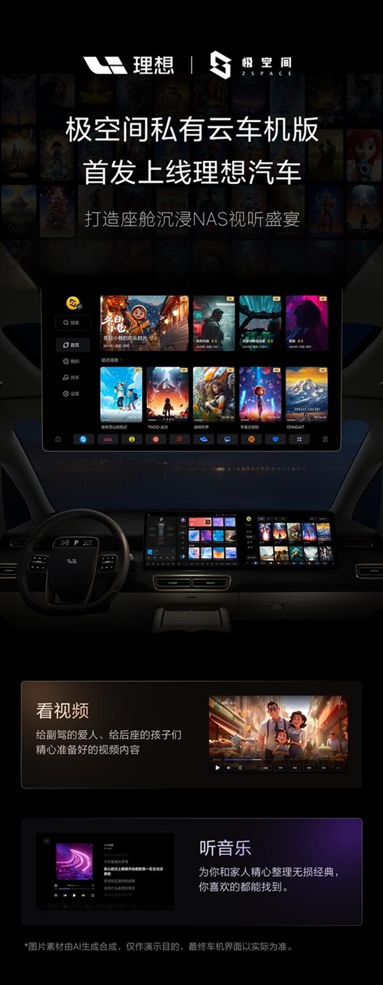 理想表示,车载NAS视听盛宴来,给副驾的爱人备好高清大片,给后座的孩子存满动画歌单,再加上无损经典音乐随心听……你的车载娱乐生态,从此更自由、更沉浸~