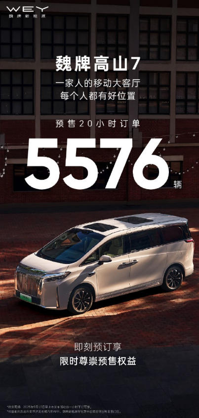 魏牌高山7预售20小时订单5576辆