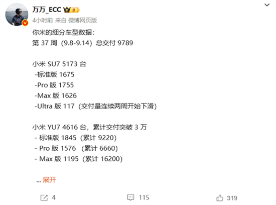 每到周二就是周交付量更新的时候,一起来看上周(9月8日-14日)的具体表现。