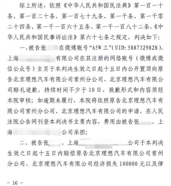 同时,张某某所属的MCN机构上海某品牌管理公司放任侵权影响扩大,与张某某构成共同侵权。法院最终判决张某某及其签约MCN机构在涉事账号置顶公开赔礼道歉,并赔偿理想汽车经济损失10万元及律师费2万元。道歉内容需持续置顶不少于10日。