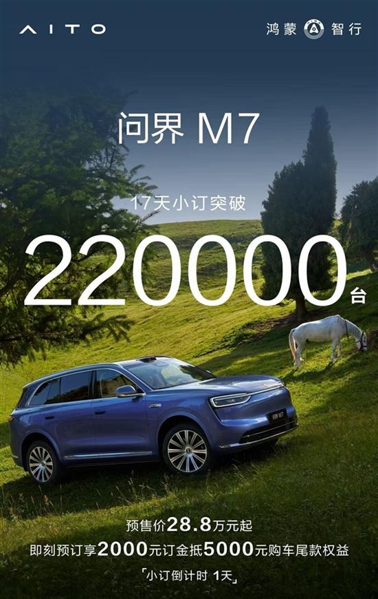 全新一代问界M7将于明晚上市,最新数据显示,该车小订已经突破了22万辆!这个成绩足以让一众友商羡慕、嫉妒且恐惧。