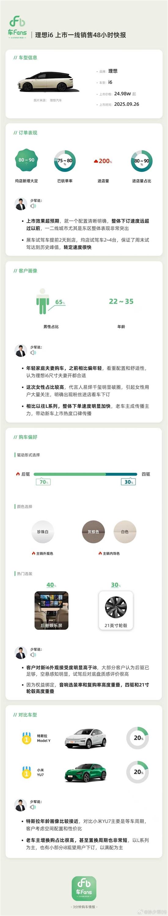特斯拉年龄画像比较接近,对比小米YU7主要是等车周期,客户考虑空间配置和性价比。