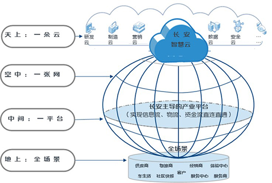 “天上一朵云,空中一张网,中间一平台,地上全场景”平台化产业架构