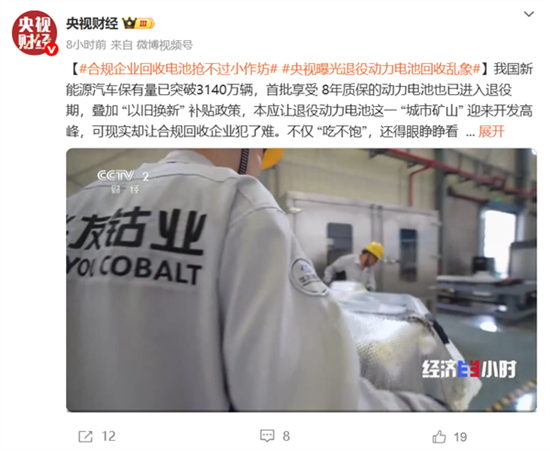 据央视财经报道,我国新能源汽车保有量已突破3140万辆,首批享受8年质保的动力电池也已进入退役期。