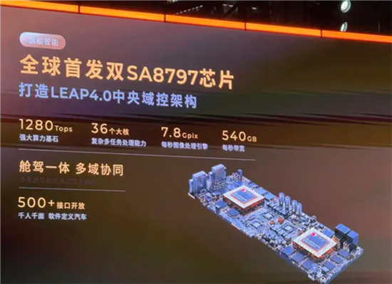 特别是在智能驾驶领域,零跑D19的硬件升级堪称跨越式的进步。全球首搭高通骁龙8797 芯片,双芯片叠加实现1280Tops算力,并且还搭载了VLA辅助驾驶系统及世界大模型,具备车位到车位的辅助驾驶能力。