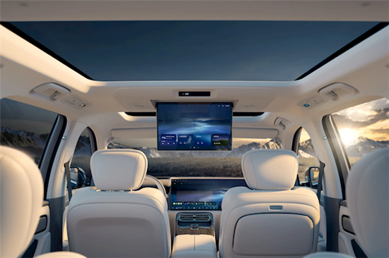 车内配备全液晶仪表盘、一体式大尺寸中控屏和副驾驶娱乐屏,二排还带有一个17.3寸3K吸顶屏,并搭载全场景AI Agent智能体,行业首发“端到端AI语音大模型”。