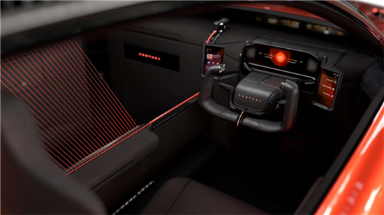 此外,该概念轿跑为四座布局,采用操控杆式方向“盘”,配备紧凑型信息娱乐屏幕。中央脊线分隔前后排,无B柱设计便于后排乘客进出。