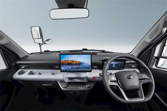 车内配置与比亚迪乘用车类似,搭载12.8英寸的中控显示屏和液晶仪表,座椅配备通风加热功能,中控台还有手机无线充电功能,舒适性比肩小车。