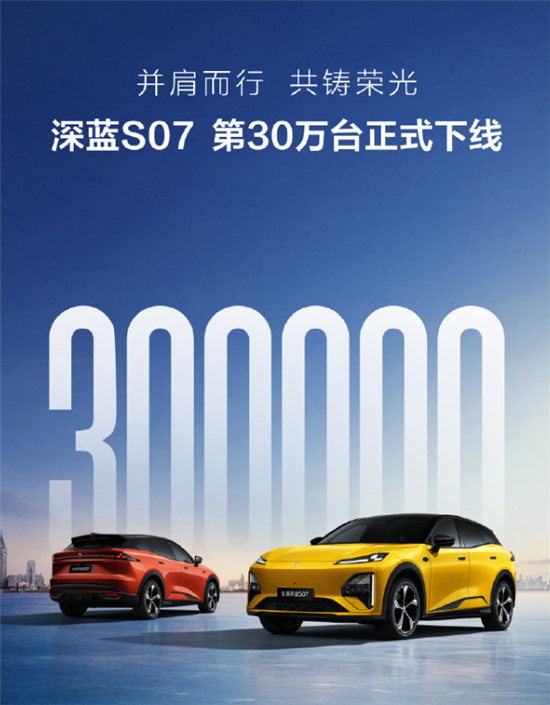 10月29日消息,深蓝汽车官方于近日宣布,旗下的S07车型第30万台正式下线。