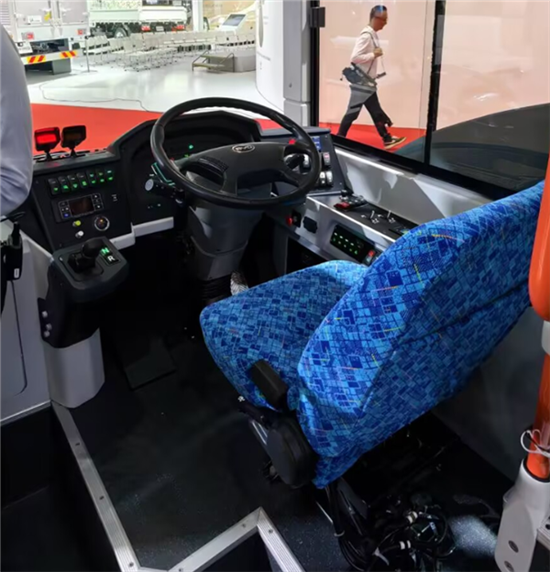 车内采用抑菌座椅、扶手不落地设计,后轮包通道宽度达590mm,提升乘客通行便利性和清洁效率。