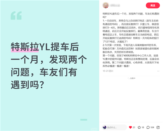 近日,有多位特斯拉Model Y L车主发帖吐槽称,车机乱打电话的bug。