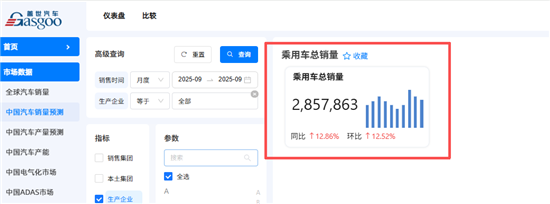 9月,中国乘用车市场延续强劲发展势头,销量达2,857,863辆,同比增长12.86%,环比增长12.52%。从市场格局来看,当月排名前十的汽车集团(比亚迪汽车、吉利控股集团等)合计销量表现亮眼,头部企业市场集中度高的特征进一步凸显。