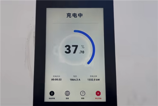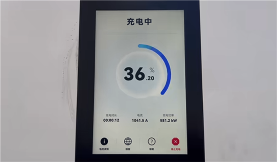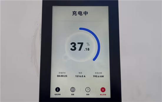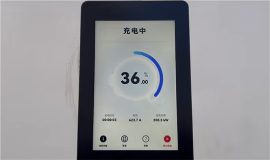 实测中,开充3秒功率就达到200千瓦,12秒攀升至580千瓦,23秒就接近1000千瓦,速率相当高。