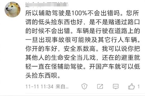 此前,有网友质疑“辅助驾驶是100%不会出错吗”,并指出驾驶员低头捡东西等行为是在“赌通过路口的时候不会出错”。