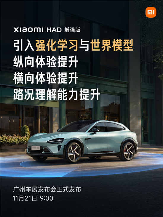 小米汽车在广州车展正式发布「Xiaomi HAD 增强版」,并同步对「安全辅助功能」进行了重点升级。