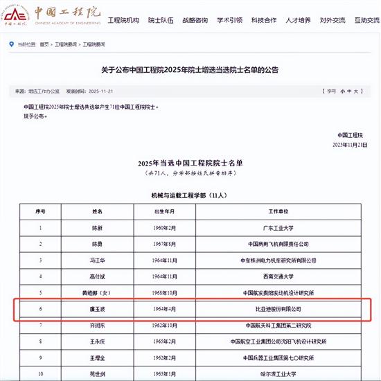 中国工程院公布了2025年院士增选结果。比亚迪集团首席科学家、汽车总工程师、汽车工程研究院院长廉玉波当选中国工程院院士。此次增选共选举产生71位中国工程院院士,廉玉波入选机械与运载工程学部名单,其当选既是对个人深耕新能源汽车领域技术成就的高度肯定,也充分体现了比亚迪“技术为王,创新为本”的发展理念。
